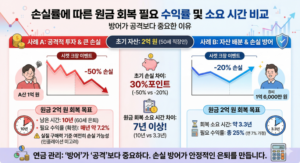연 5% 수익률 가정 시 회복 기간은? 복리 계산 시 약 14.2년이 소요되며, 이는 노후 준비 골든타임을 상당 부분 소진하는 기간이다.